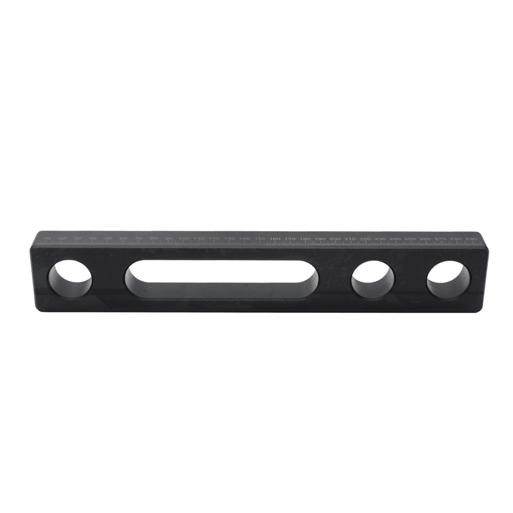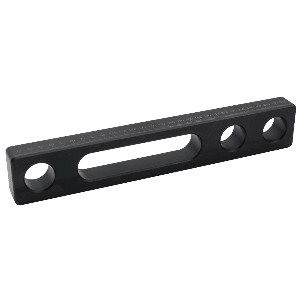 The combination of holes and slots allows the stop300 to be fixed or adjusted for positioning