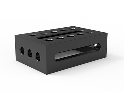 By combining oblong slot and system bore holes, it can be firmly fastened or variably adjusted. In addition, it can be used with prisms and adapters.