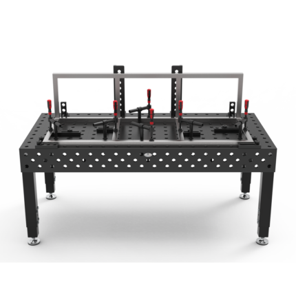 Three side rows of grid D28 system holes, 100 mm apart, thus significantly increasing the table extension and clamping area